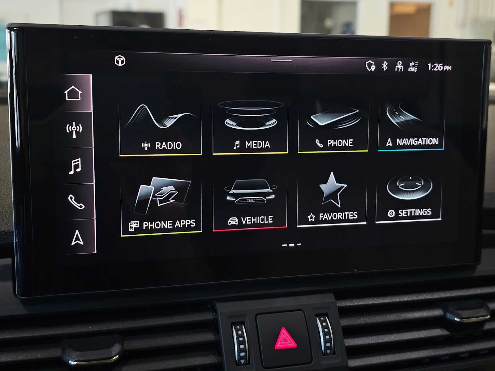 - Radio: Audi Sound System -inc: Audi smartphone interface w/wireless Apple CarPlay, preparation for mobile phone (Bluetooth®), MMI touch display w/10.1" center screen and 2 rear USB charge ports