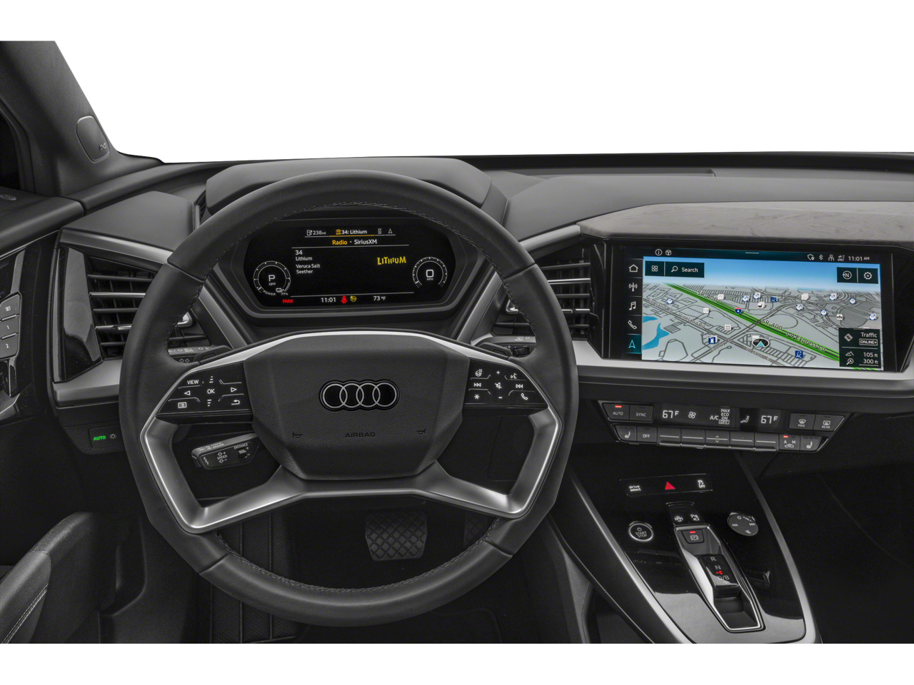 - Radio: Audi Sound System -inc: Audi smartphone interface w/wireless Apple CarPlay and Android Auto, Bluetooth® w/audio streaming, MMI touch display w/11.6" touchscreen and 12V socket w/2x USB-C charge ports