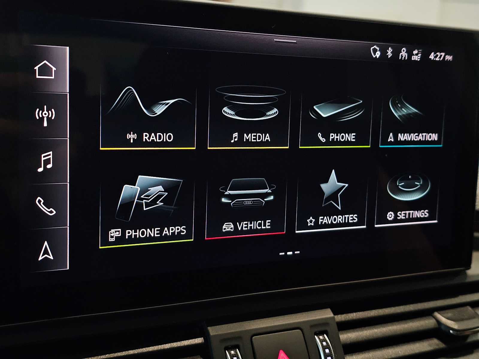 - Radio: Audi Sound System -inc: Audi smartphone interface w/wireless Apple CarPlay, preparation for mobile phone (Bluetooth®), MMI touch display w/10.1" center screen and 2 rear USB charge ports